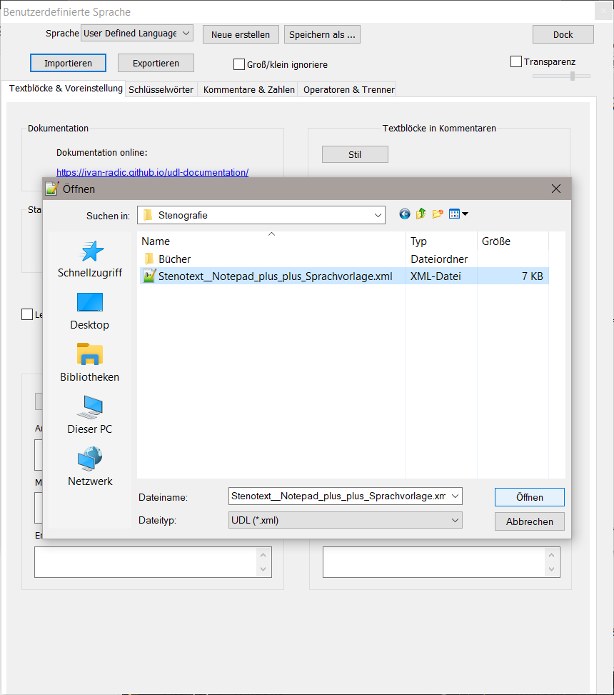 Klicken Sie mit der rechten Maustaste auf den folgenden Link und wählen im daraufhin eingeblendeten Menü den Punkt: Ziel speichern unter...: Stenotext__Notepad_plus__Sprachvorlage.xml