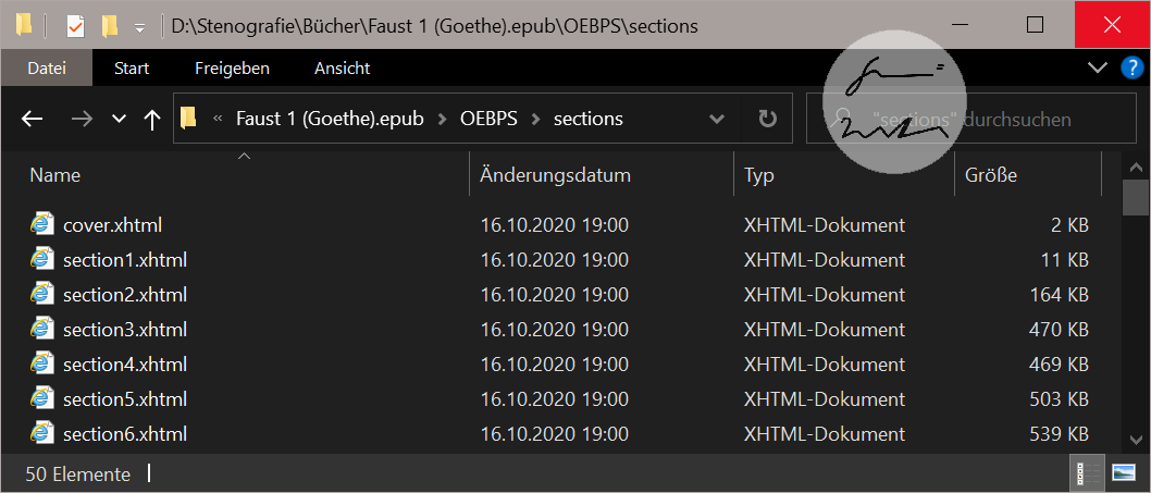 Einige E-Book-Reader zeigen lange Texte nur sehr verzögert an. Daher ist es sinnvoll, den Text in Abschnitte von ca. 5.000 bis 8.000 Zeichen zu unterteilen. Ab der Position dieses Steuerzeichens wird in der ePUB-Datei intern eine neue Unterdatei (Sektion) begonnen. Es hat keinen Einfluss auf die Textgestaltung.
